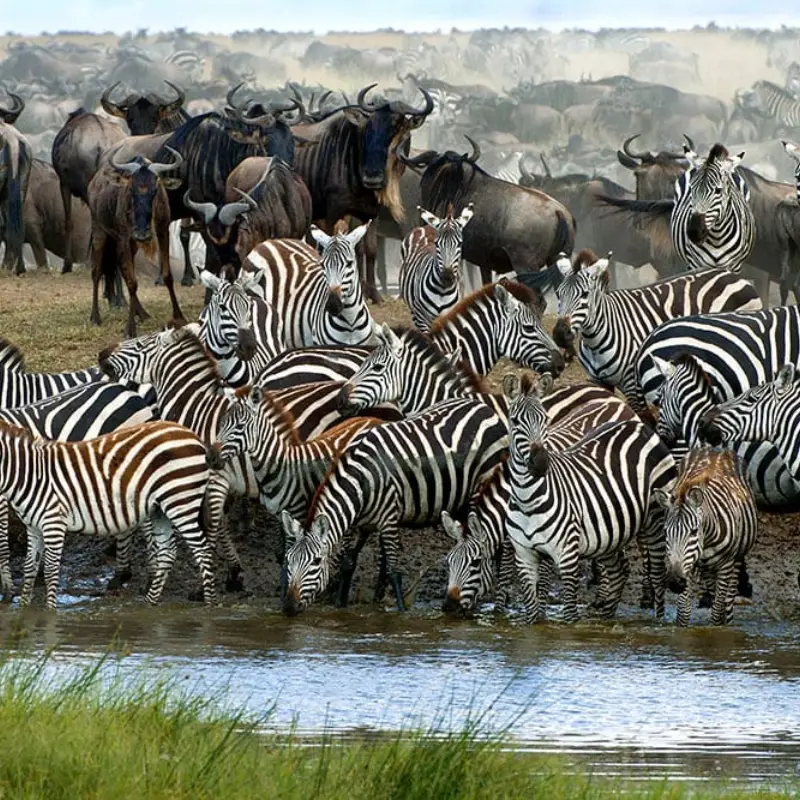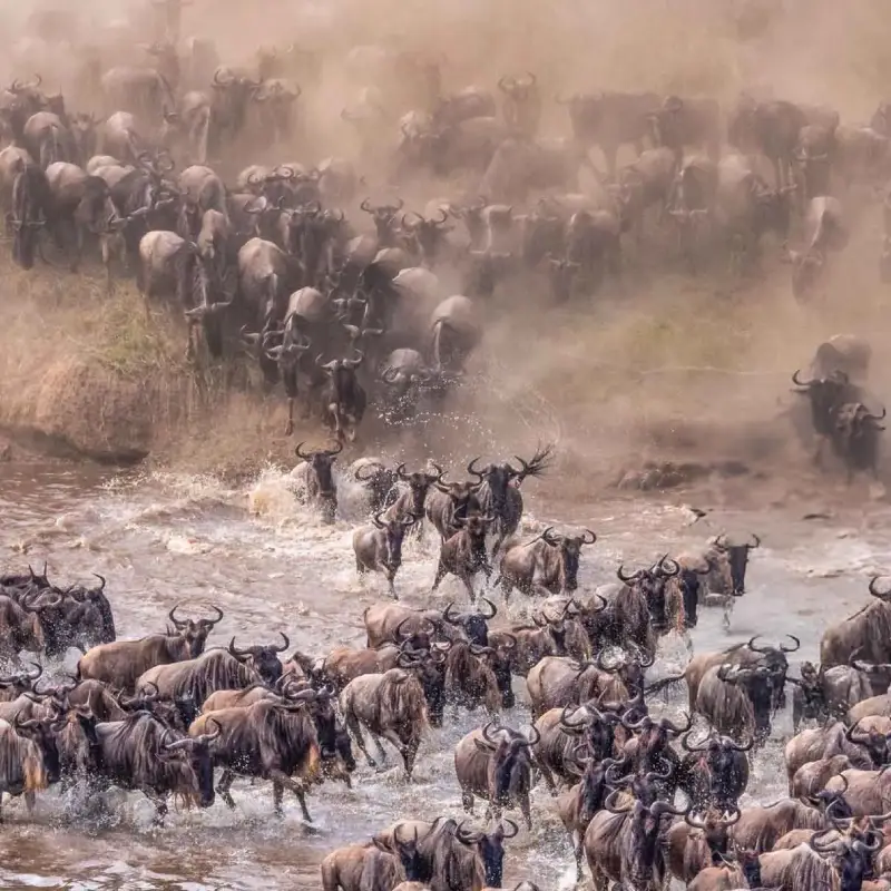 Drive north to the Mara River region, where from July to October, the Great Migration reaches its most dramatic chapter. Watch thousands of wildebeest and zebras cross crocodile-infested waters—a moment of chaos and courage unlike anything else in nature. With our expert guides, you’ll be in the right place at the right time for once-in- a-lifetime sightings.